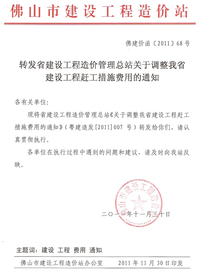 附件:關于調整我省建設工程趕工措施費用的通知(粵建造發[2011]007號.doc