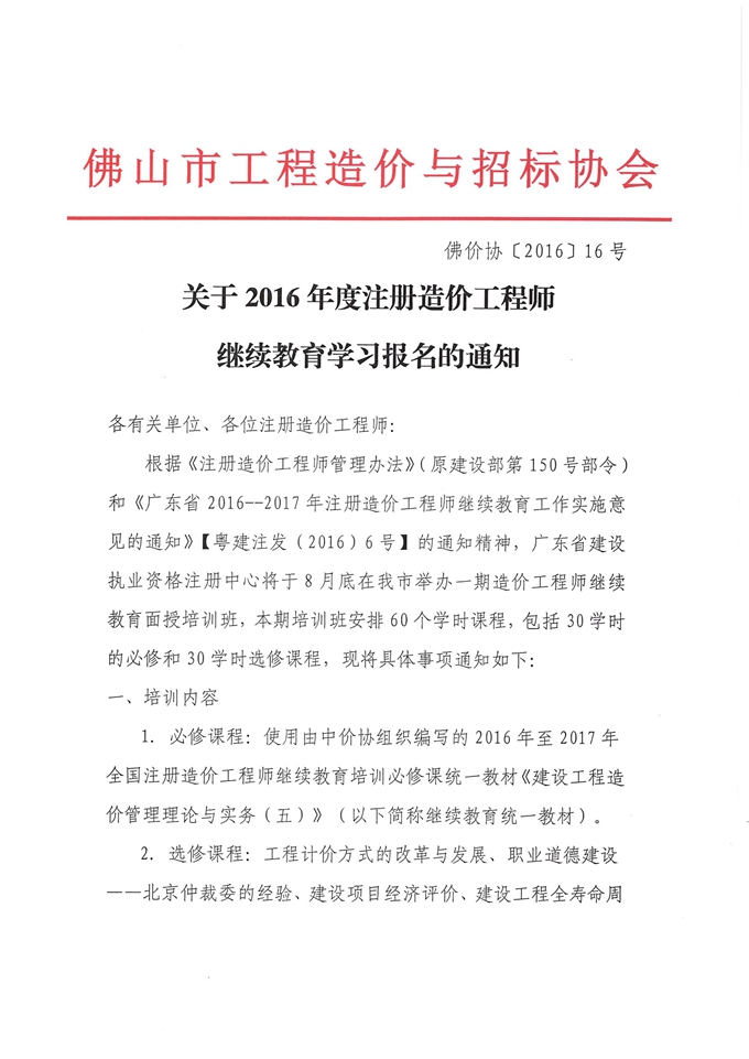 關(guān)于2016年度注冊(cè)造價(jià)工程師繼續(xù)教育學(xué)習(xí)報(bào)名的通知