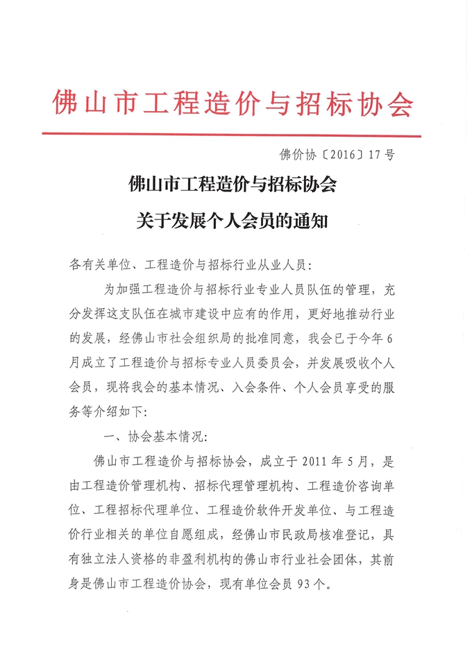 佛山市工程造價與招標(biāo)協(xié)會關(guān)于發(fā)展個人會員的通知