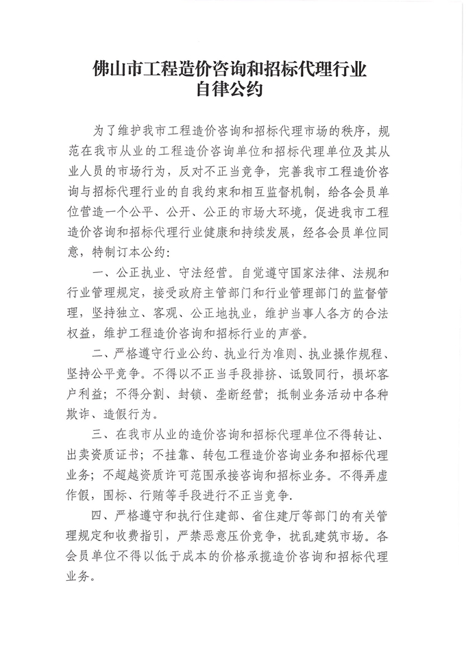 附件:佛山市工程造價咨詢和招標代理行業自律公約實施細則
