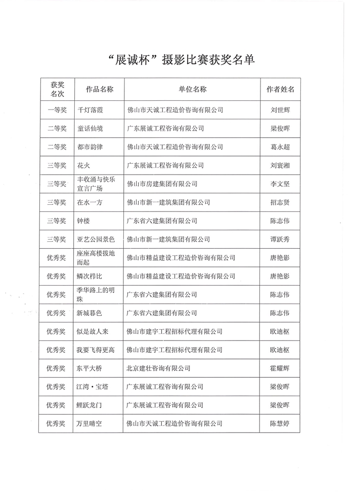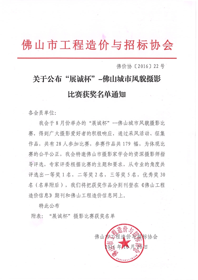 關(guān)于公布“展誠杯”-佛山城市風(fēng)貌攝影比賽獲獎名單通知