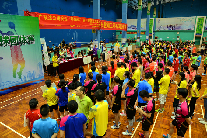 在鮮花盛開,草木欣然的五月,20號的這一天,依然是熟悉的場地—張槎體育中心羽毛球館里,200多名精神抖擻、充滿陽光自信的運動員集合在這里,舉行一年一度歡樂的羽壇大餐,“2017年‘粵輝杯'羽毛球團體賽”。