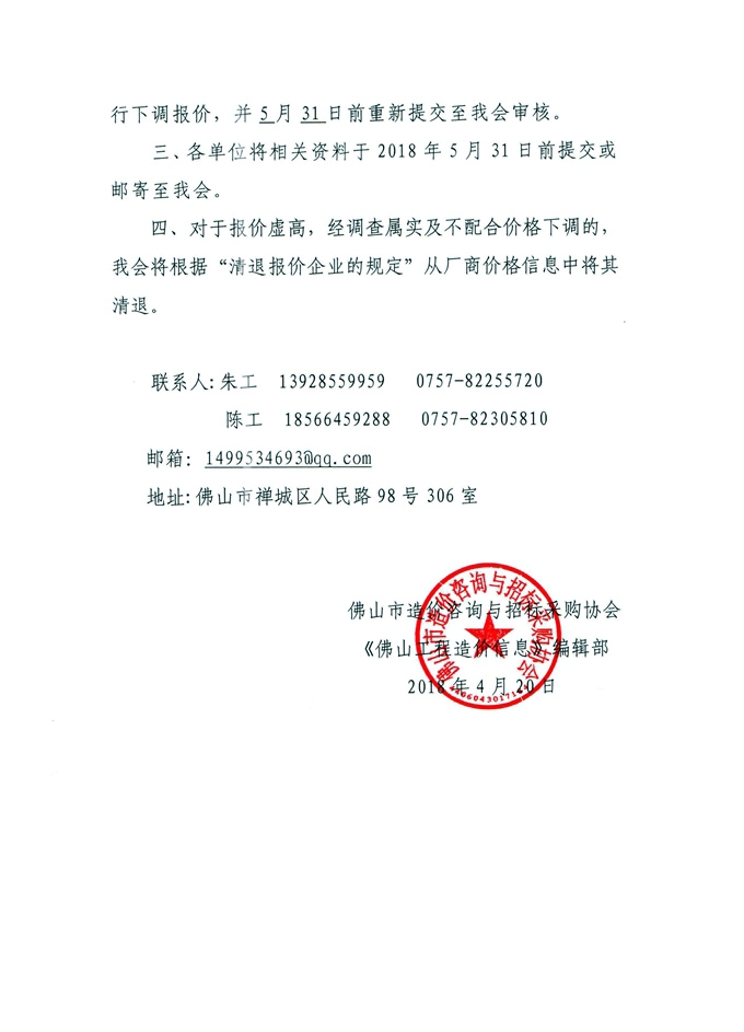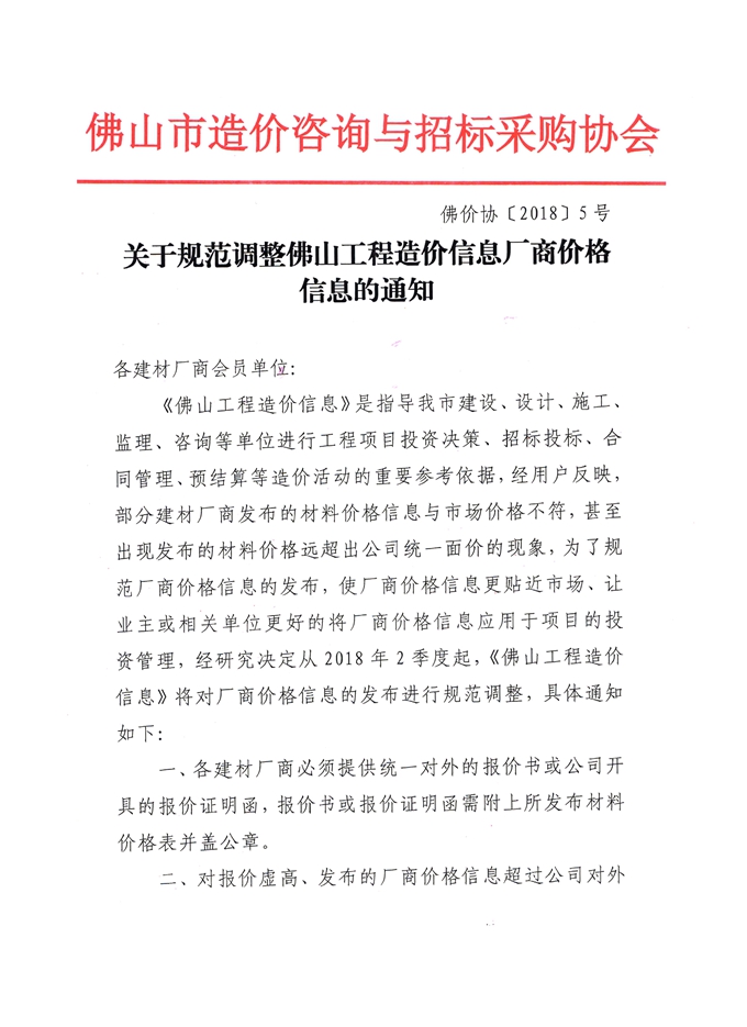 關(guān)于規(guī)范調(diào)整佛山工程造價信息廠商價格信息的通知