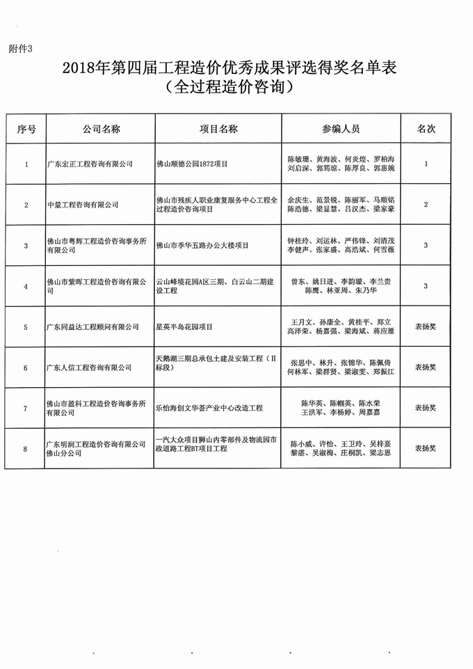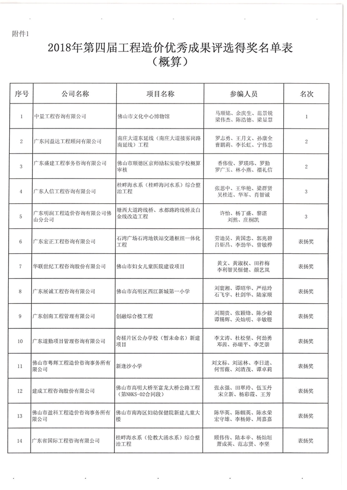 佛山市造價咨詢與招標采購協會第四屆工程造價優秀成果評選活動獲獎名單通知