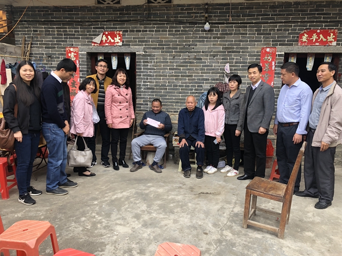 1月15日,我會黨支部和廣東展誠工程咨詢公司、廣東盛建工程事務咨詢有限公司佛山分公司一行8人在高明區民政局程局長親自帶領下,深入到高明區更合鎮白洞村給當地困難戶進行扶貧慰問。