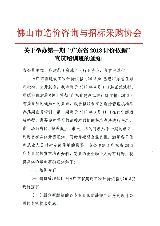 關于舉辦第一期“廣東省2018計價依據”宣貫培訓班的通知