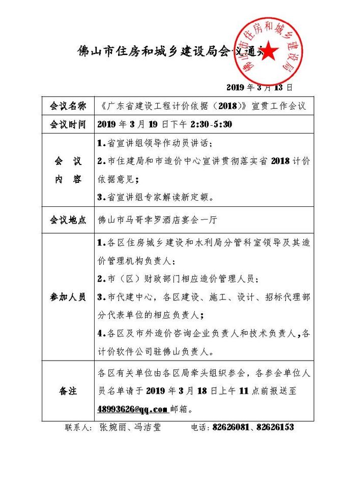 佛山市住房和城鄉建設局關于《廣東省建設工程計價依據(2018)》宣貫工作會議的通知
