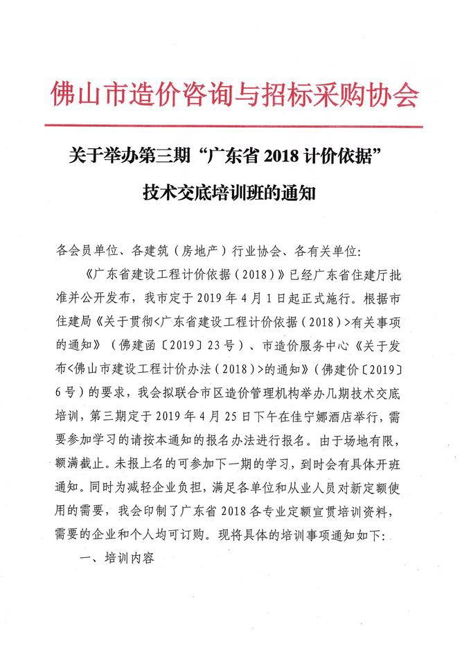 關于舉辦第三期“廣東省2018計價依據”技術交底培訓班的通知