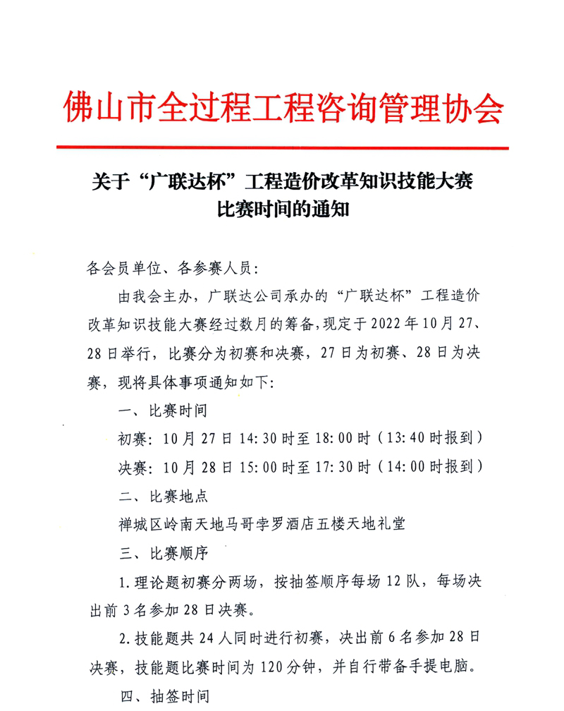 關于“廣聯達杯”工程造價改革知識技能大賽比賽時間的通知