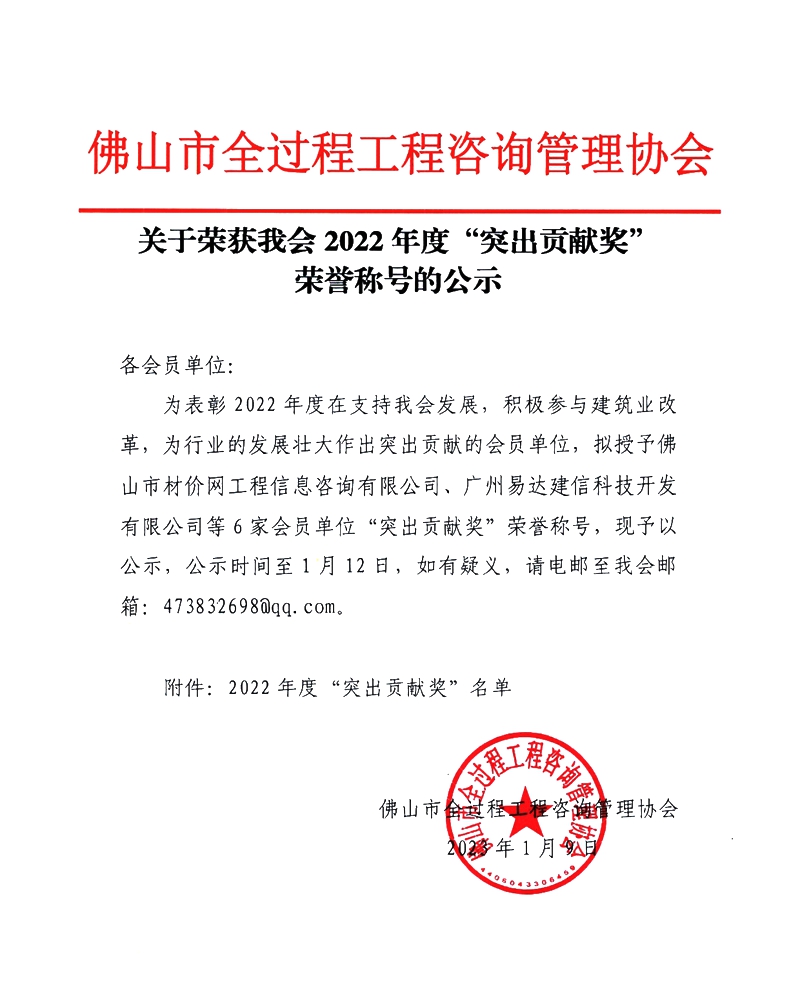 關于榮獲我會2022年度“突出貢獻獎”榮譽稱號的公示