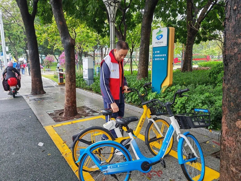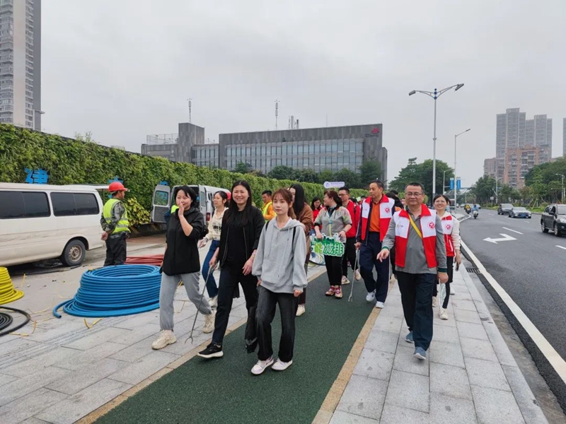 在行進過程中,參加活動的大家開啟另一重身份——環保公益志愿者,志愿者們拿著垃圾夾,將市民丟棄的垃圾,大的如塑料瓶、包裝袋,小的如煙頭、紙屑,全部裝入垃圾袋中,扶正被風雨吹倒的共享自行車,以實際行動宣傳垃圾分類、保護生態、創建文明城市的理念,倡導節能減排、低碳出行,為佛山打造綠色宜居環境貢獻社會組織的一份力量。