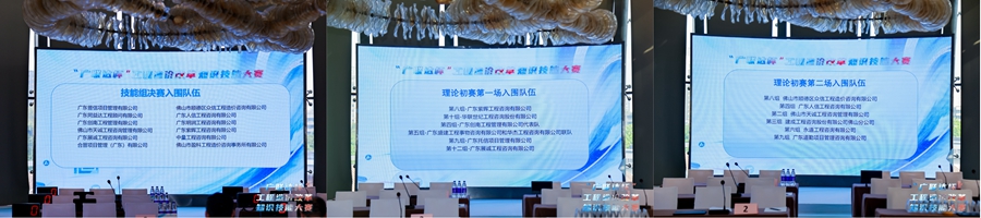 競賽第一天,25號下午主會場舉辦了團隊理論題組初賽。設置必答題和搶答題兩個環節,題目內容涵蓋工程造價、算量和招標采購三大方面。每小組以公司為單位,分為兩場對決,每場12支隊伍,共24支隊伍進行較量,現場邀請了冼建宇、于勇、賴燦輝、馬建圖作為專家評委。選手們各顯身手、各盡所能,各家發揮自身優勢,亮劍賽場。參賽選手們認真專注,場下觀眾不時為選手加油喝彩。