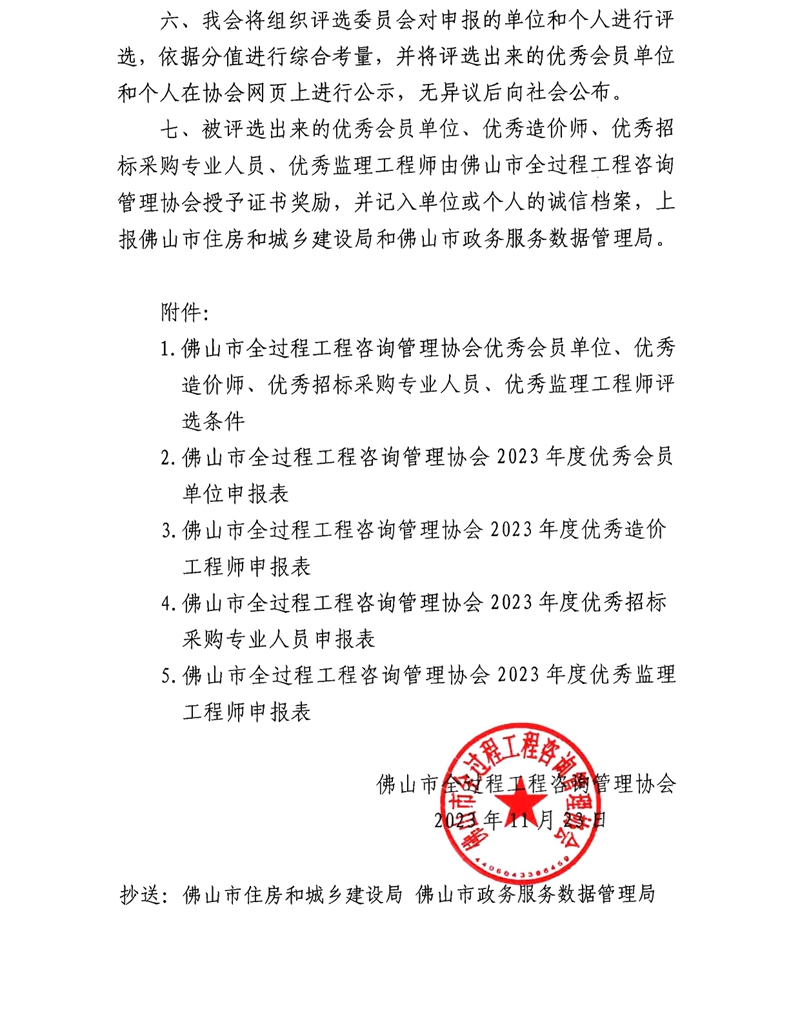 關(guān)于開(kāi)展2023年度“優(yōu)秀會(huì)員單位”“優(yōu)秀造價(jià)師”“優(yōu)秀招標(biāo)采購(gòu)專業(yè)人員”“優(yōu)秀監(jiān)理工程師”評(píng)選活動(dòng)的通知