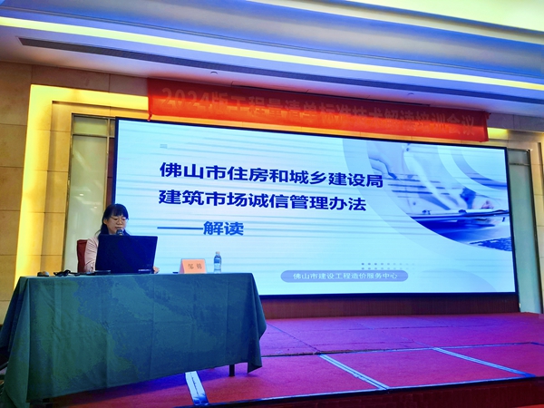 佛山市建設(shè)工程造價服務(wù)中心鄒錦副主任針對《佛山市住房和城鄉(xiāng)建設(shè)局建筑市場誠信管理辦法》,從修改背景、要點內(nèi)容、合同網(wǎng)簽辦理、常見問題解答等方面進行了全面的解讀。她強調(diào),完善建筑市場誠信體系是規(guī)范市場行為、優(yōu)化營商環(huán)境的重要抓手,各企業(yè)需以合規(guī)管理為基,以創(chuàng)新實踐為翼,共同構(gòu)建“守信激勵、失信懲戒”的良性生態(tài)。