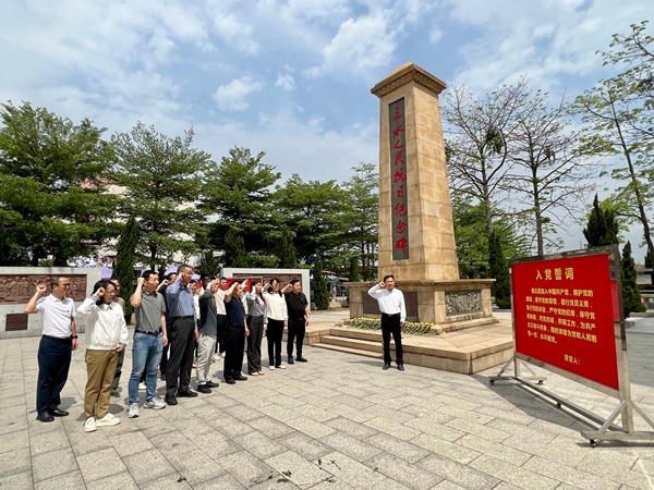 首先,全體黨員干部前往三水人民抗日紀念碑開展愛國主義教育活動。清風寄哀思,松柏映忠魂。在莊嚴的烈士紀念碑前,大家整齊列隊,神情肅穆,通過瞻仰紀念碑、敬獻鮮花、重溫入黨誓詞等形式,向革命烈士致以無盡的哀思和深切的緬懷。每一朵鮮花都承載著對先烈們的敬意,每一句誓詞都彰顯著對初心使命的堅守。