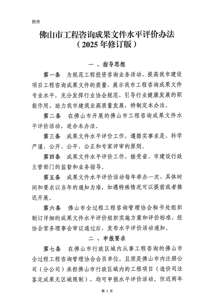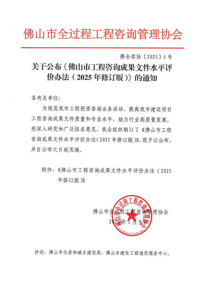 關于公布《佛山市工程咨詢成果文件水平評價辦法(2025年修訂版)》的通知