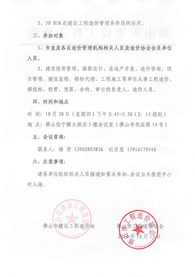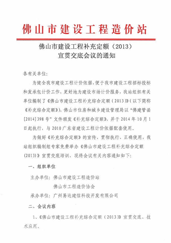 佛山市建設工程補充定額(2013)宣貫交底會議的通知