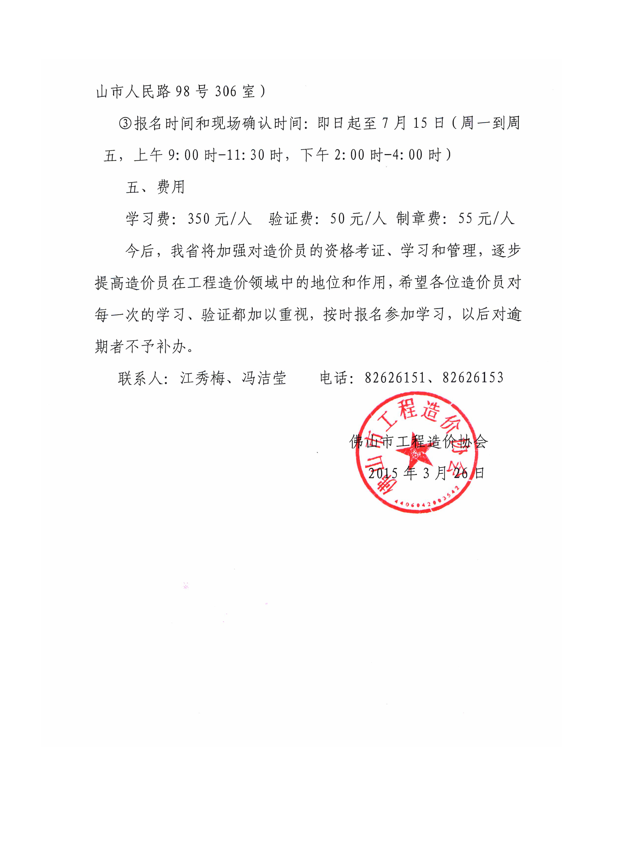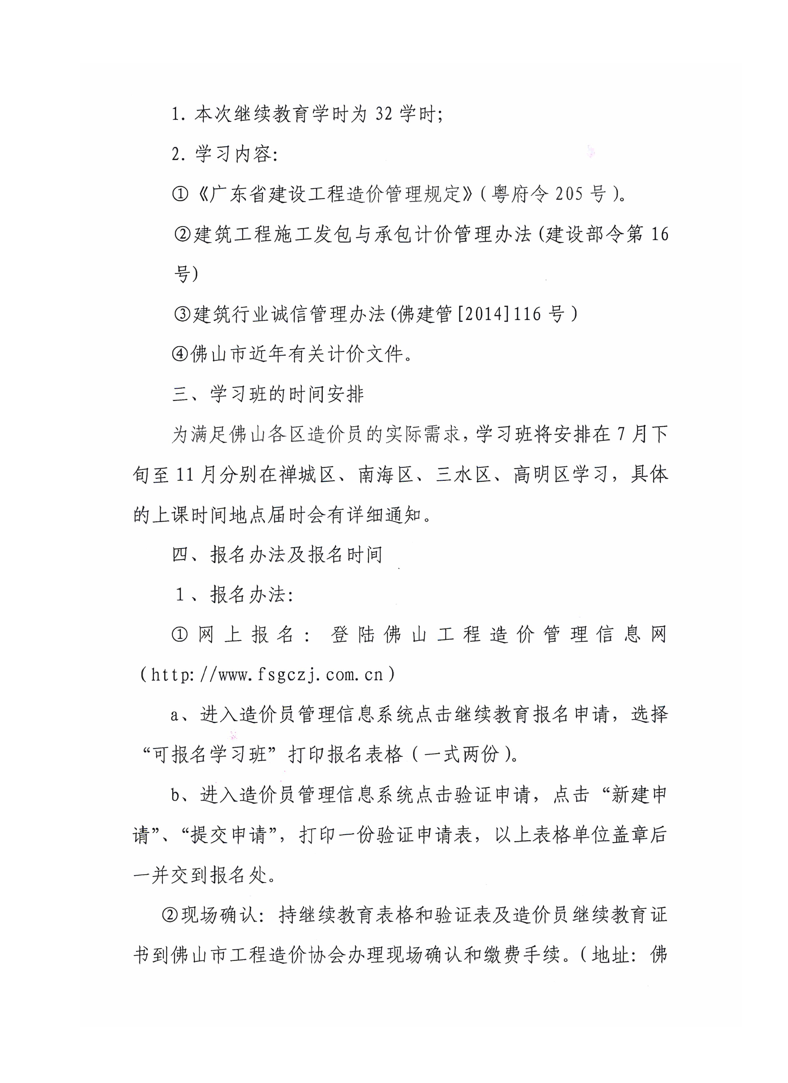 關于佛山市2015年建設工程造價員繼續教育學習和驗證的通知