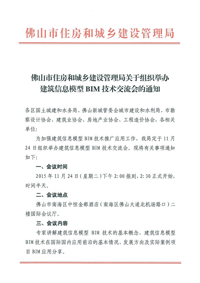 佛山市住房和城鄉(xiāng)建設(shè)管理局關(guān)于組織舉辦建筑信息模型BIM技術(shù)交流會(huì)的通知