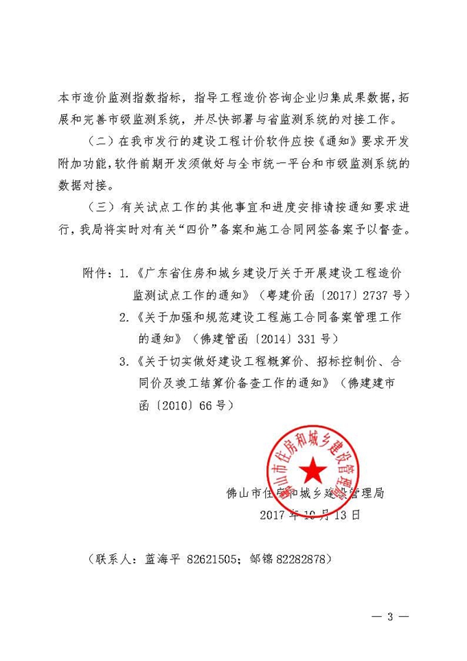 佛山市住房和城鄉建設管理局關于開展建設工程造價監測試點工作實施意見的通知