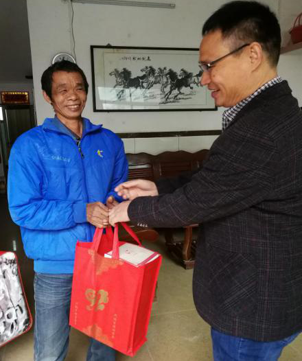 慰問團一行首先到沙洲村公共服務站,與沙洲村委會干部進行交流,了解當地貧困戶情況,聽取駐村扶貧干部精準扶貧三年規劃的情況。隨后,在駐村干部的引領下,我們走訪了4戶市建設工程造價服務中心領導對口幫扶的貧困家庭,贈送了御寒被子、生活用品等慰問物資,與他們進行親切交談,詳細了解他們的工作生活情況,并勉勵貧困戶堅定信心、自力更生、脫貧致富,祝福貧困戶生活越來越美好。