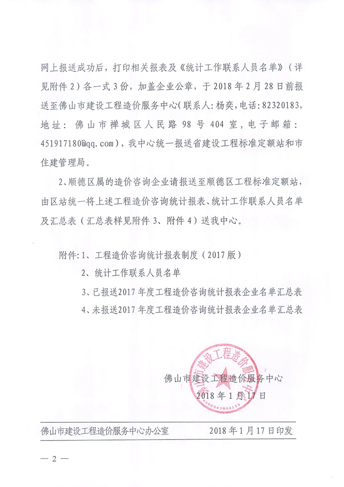 佛山市建設工程造價服務中心轉發市住建管理局關于做好2017年工程造價咨詢統計報表報送工作的通知