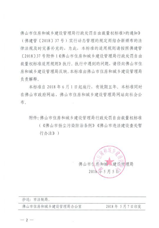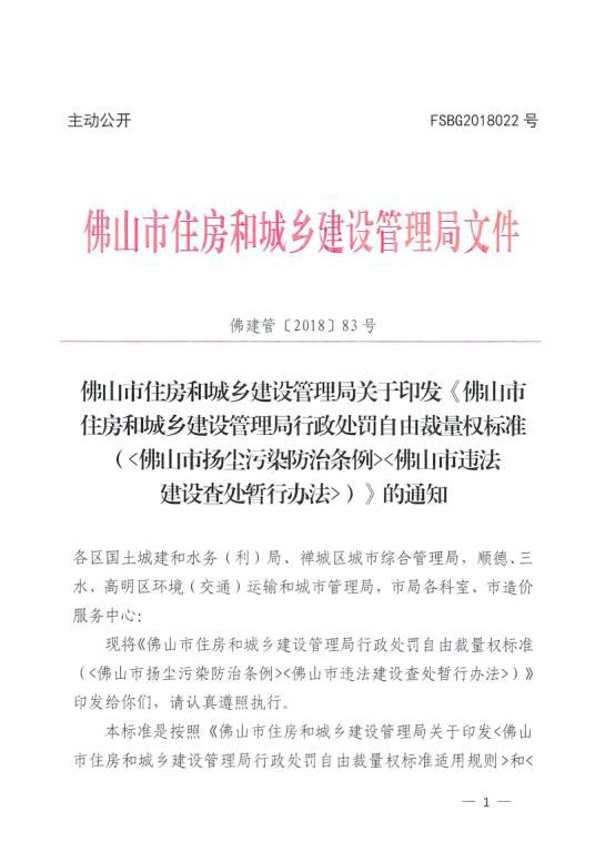 關于印發《佛山市住房和城鄉建設管理局行政處罰自由裁量權標準(佛山市揚塵污染防治條例)(佛山市違法建設查處暫行辦法)》的通知