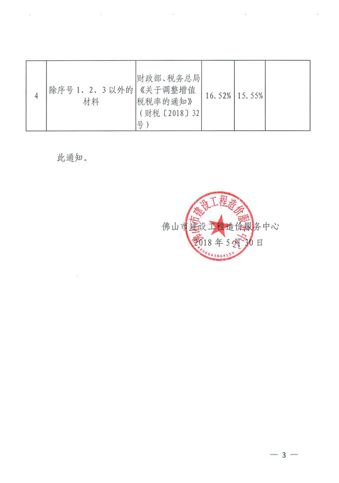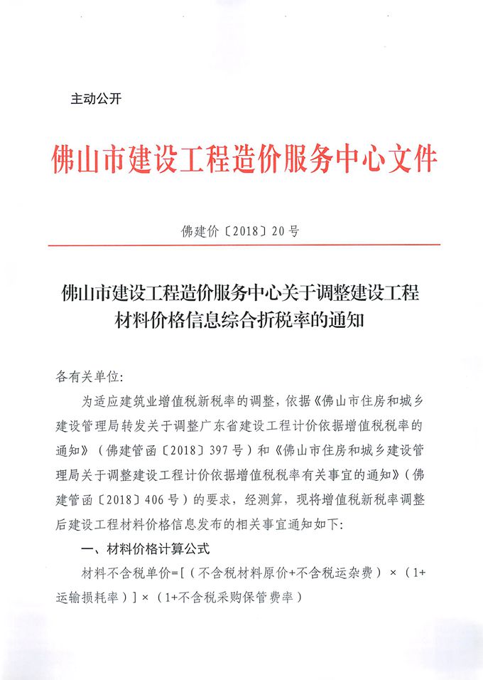 佛山市建設工程造價服務中心關于調整建設工程材料價格信息綜合折稅率的通知