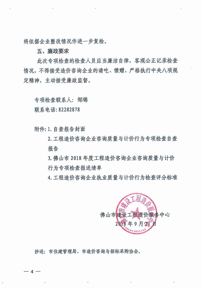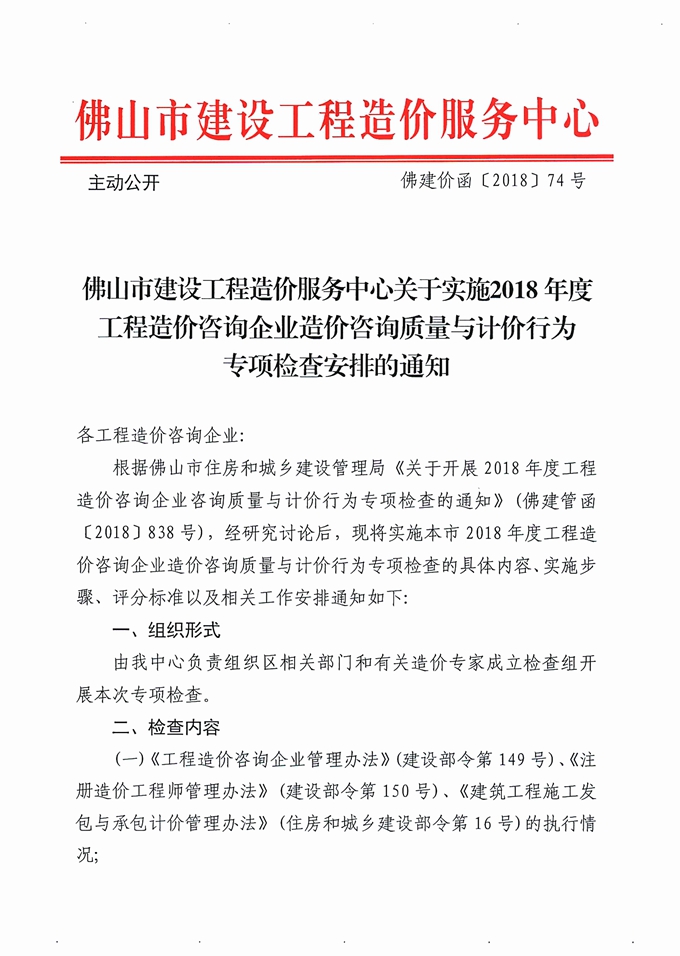 佛山市建設(shè)工程造價(jià)服務(wù)中心關(guān)于實(shí)施2018年度工程造價(jià)咨詢企業(yè)造價(jià)咨詢質(zhì)量與計(jì)價(jià)行為專項(xiàng)檢查安排的通知