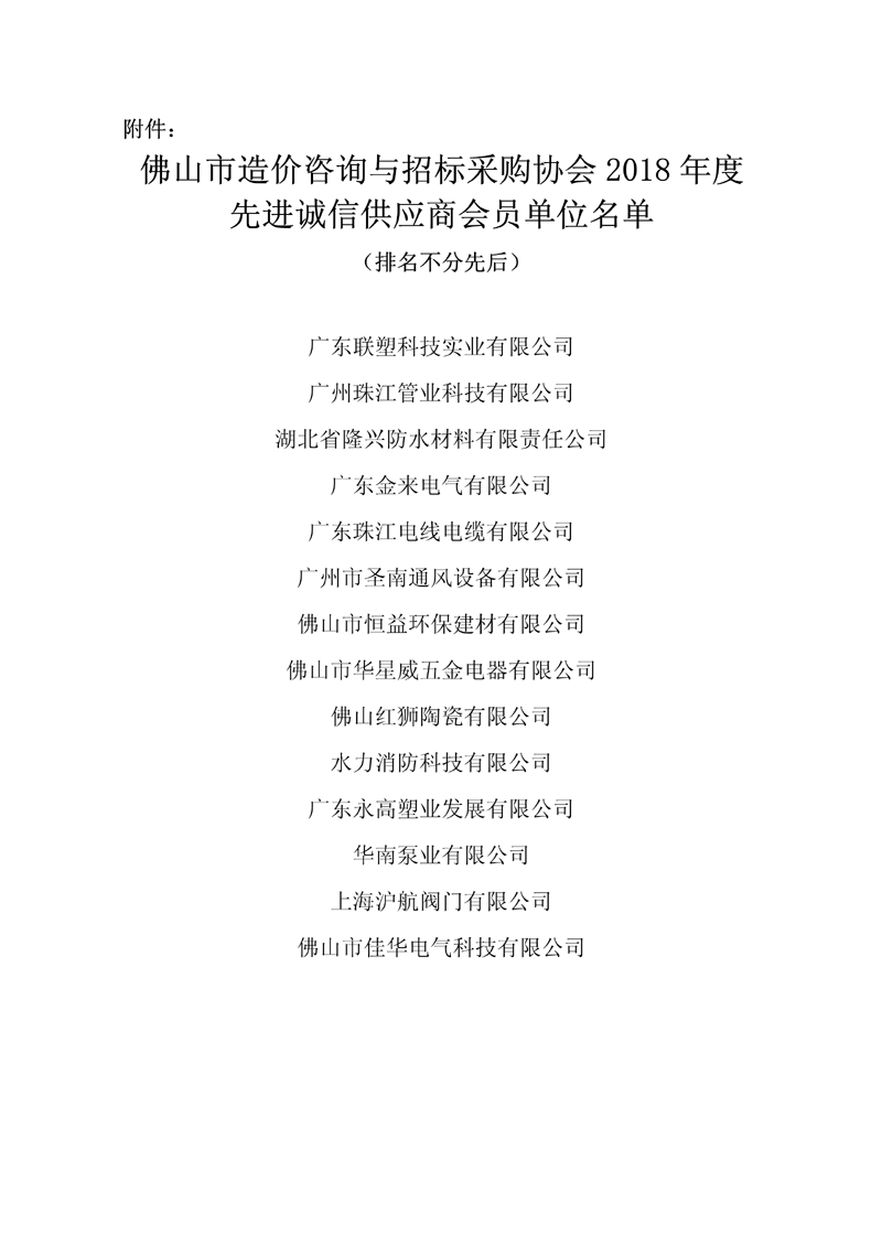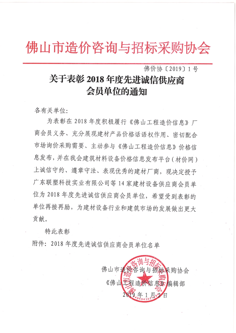 關(guān)于表彰2018年度先進誠信供應(yīng)商會員單位的通知
