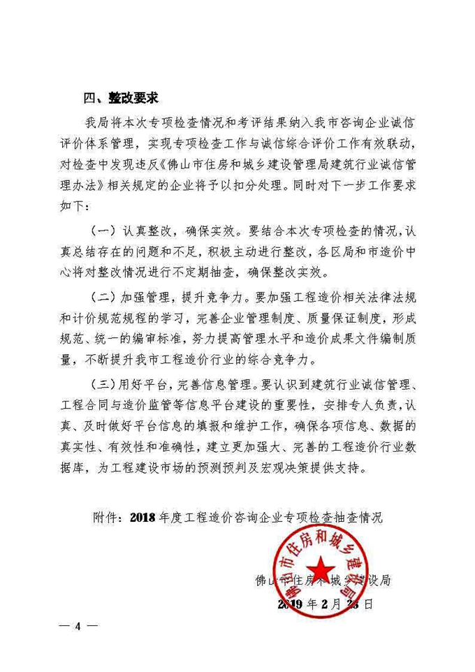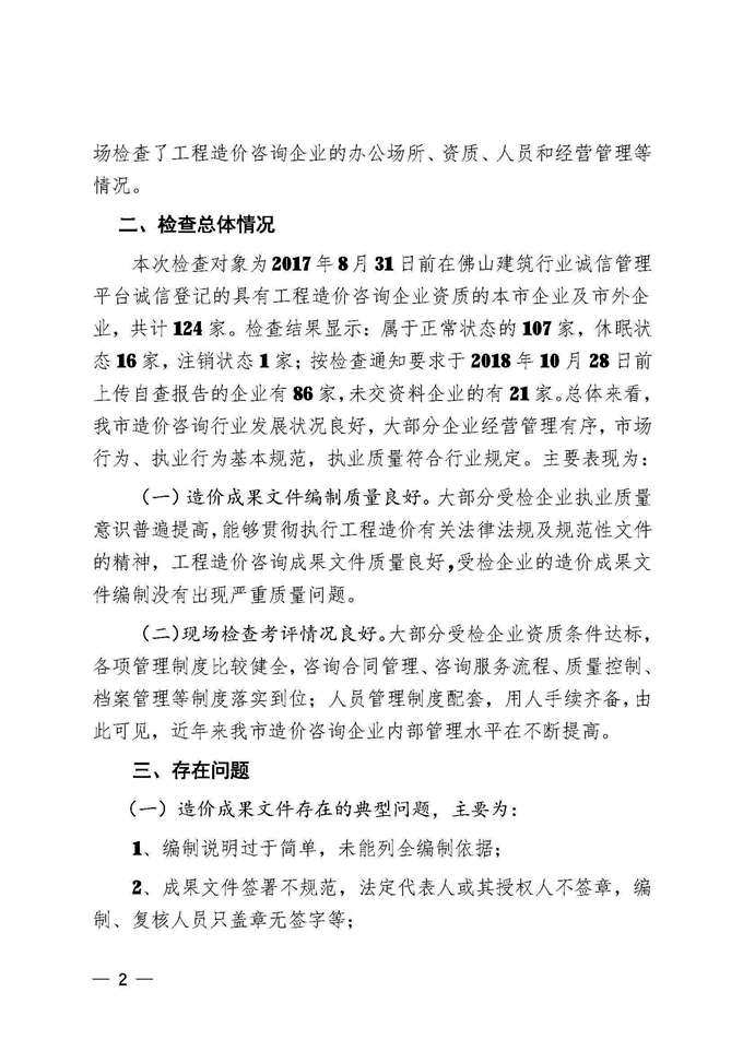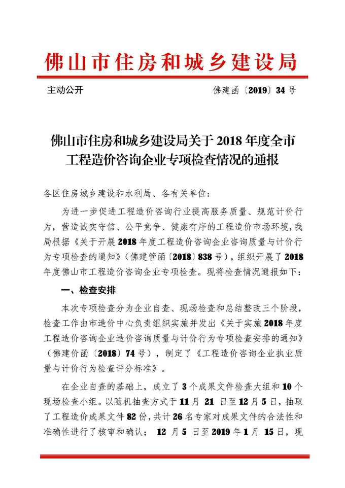 佛山市住房和城鄉建設局關于2018年度全市工程造價咨詢企業專項檢查情況的通報