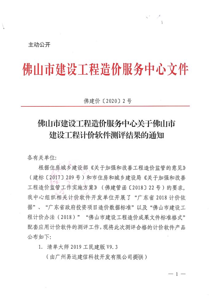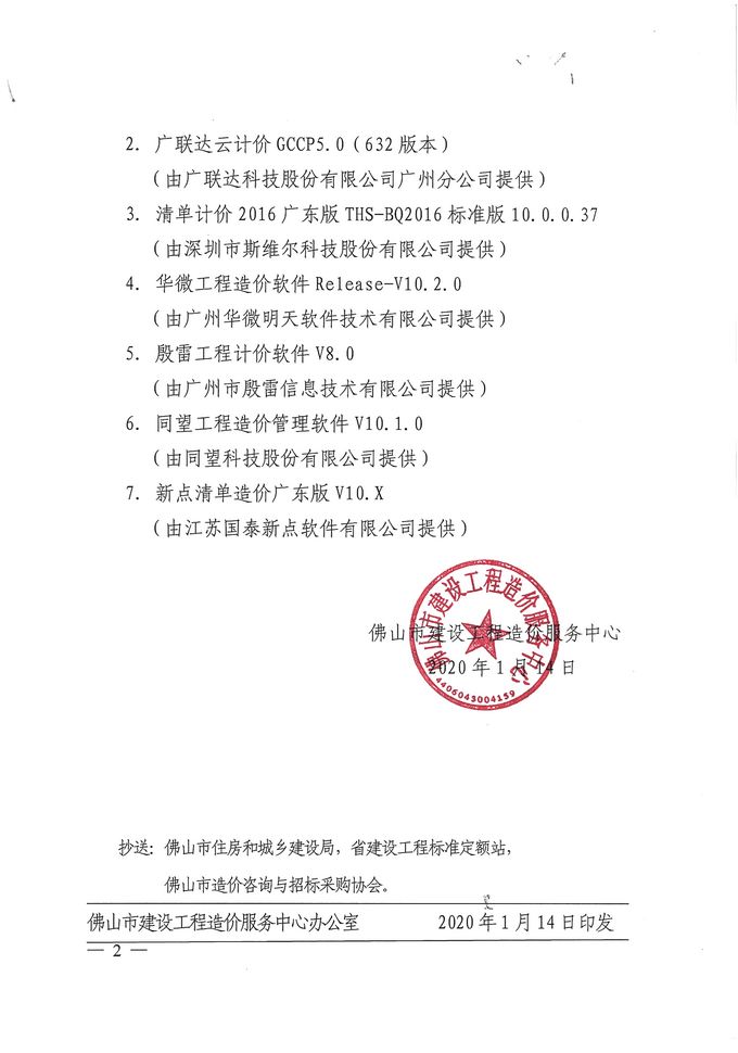 佛山市建設工程造價服務中心關于佛山市建設工程計價軟件測評結果的通知