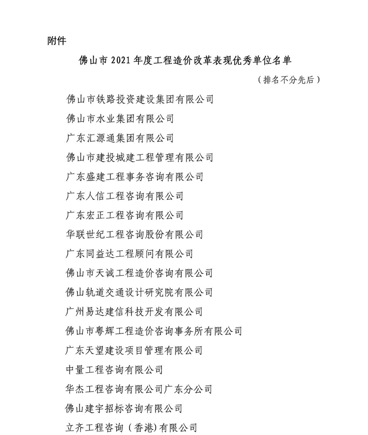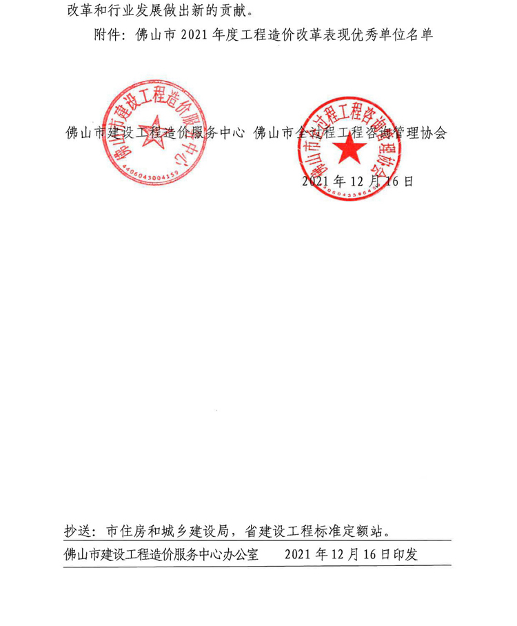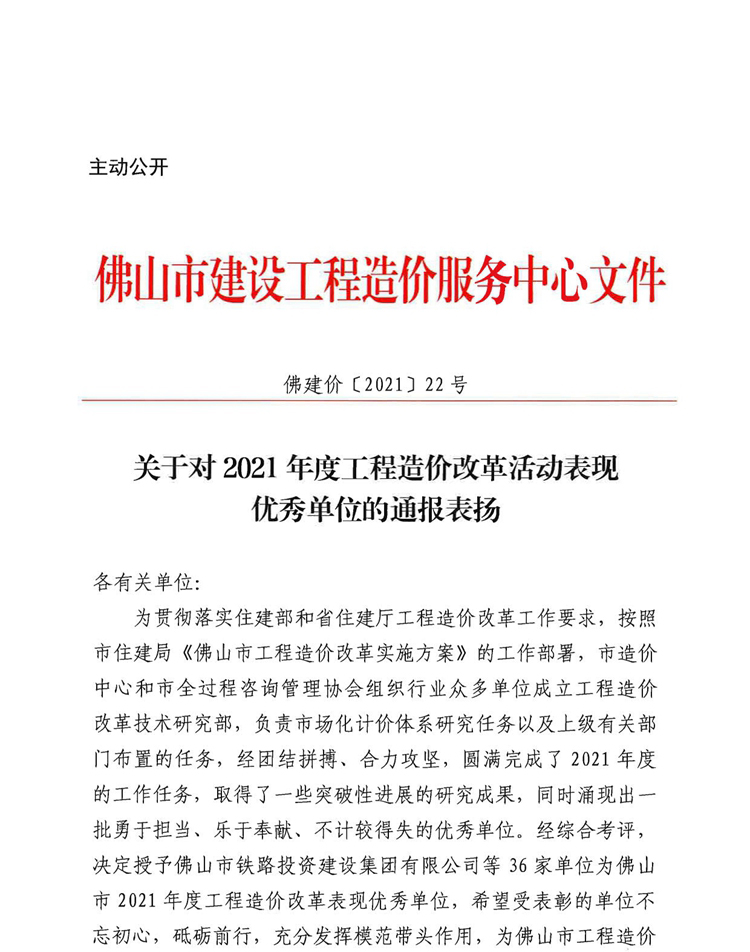 關于對2021年度工程造價改革活動表現優秀單位的通報表揚