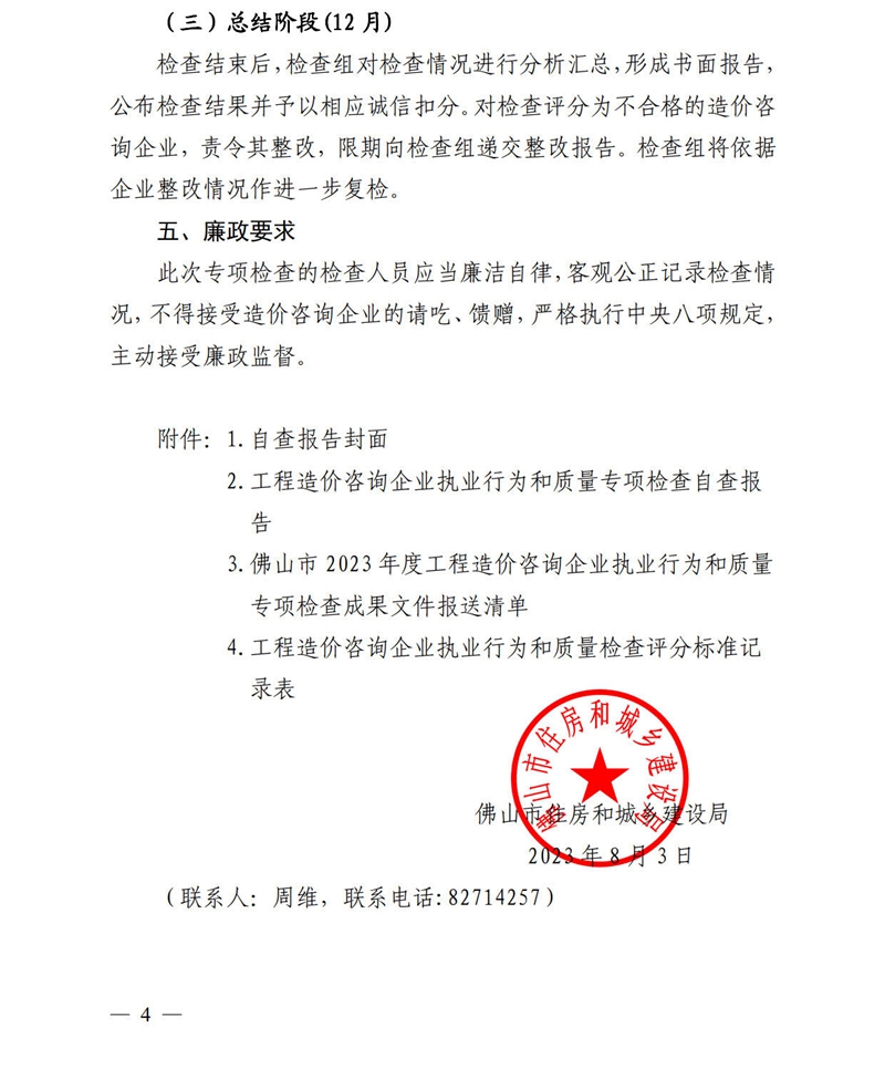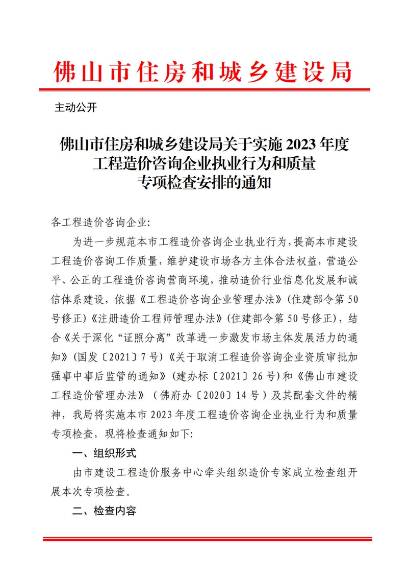 佛山市住房和城鄉建設局關于實施2023年度工程造價咨詢企業執業行為和質量專項檢查安排的通知