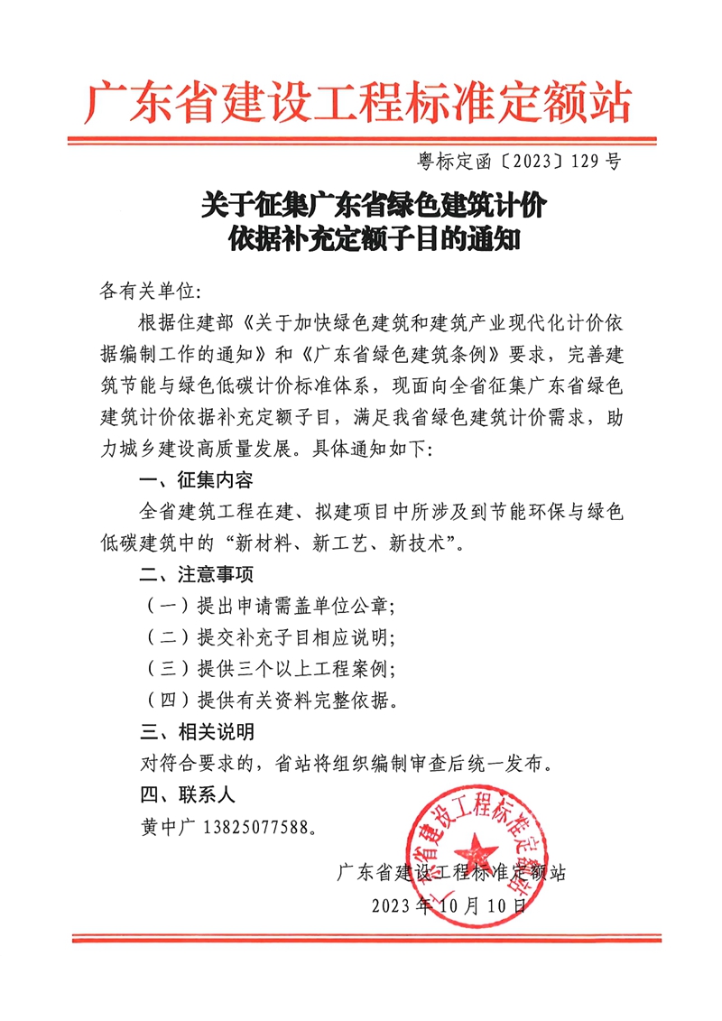 轉發 | 關于征集廣東省綠色建筑計價依據補充定額子目的通知