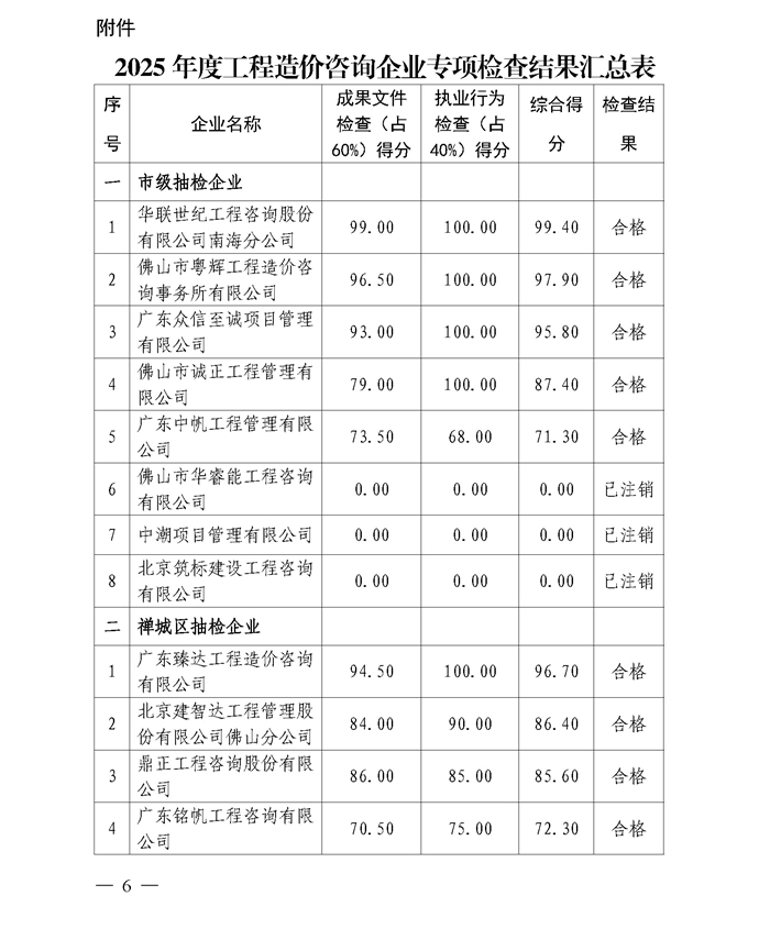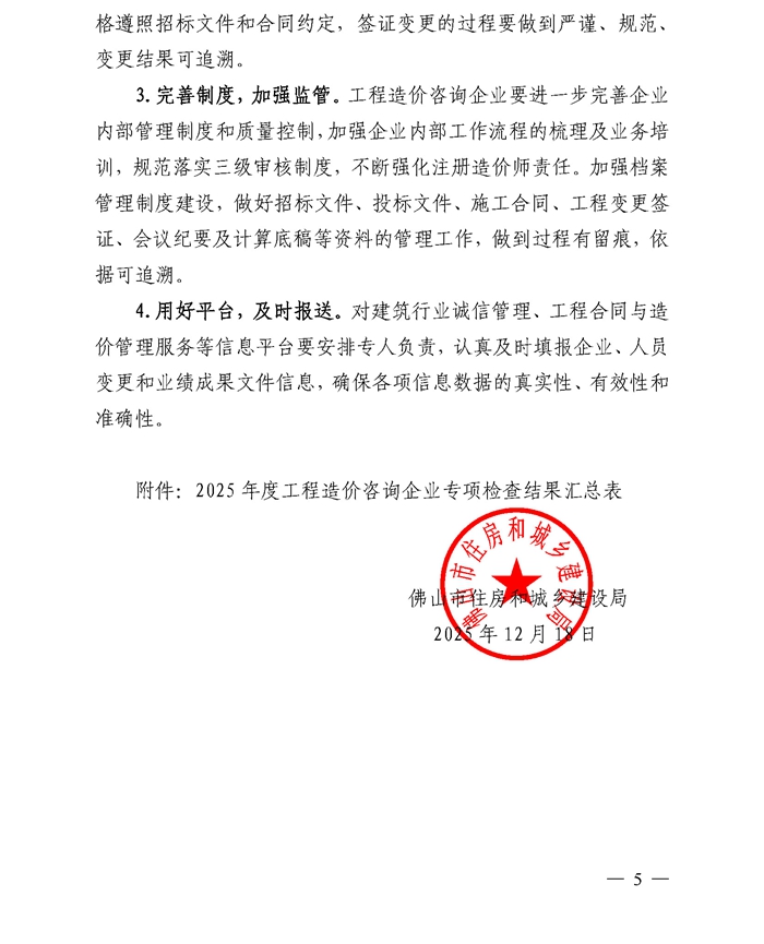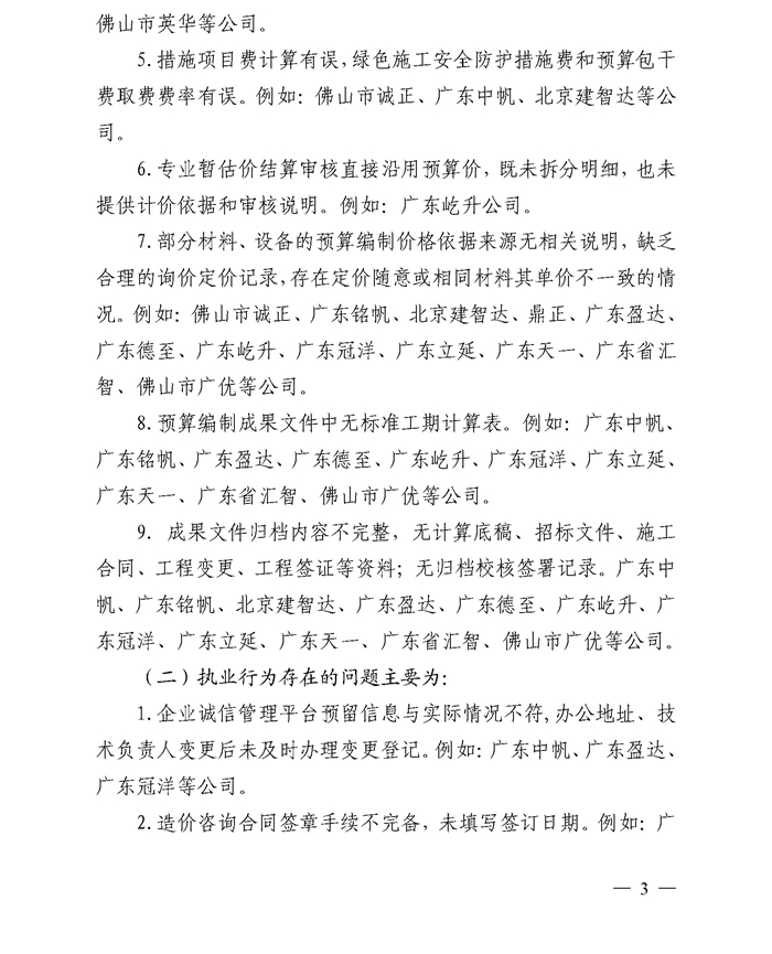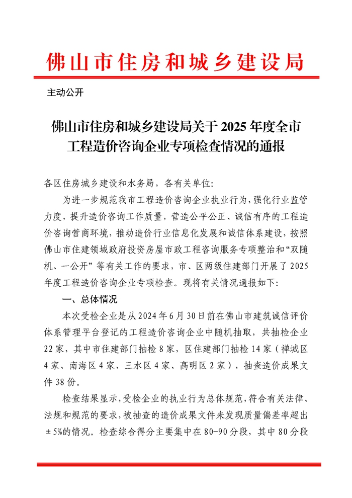 轉發 | 佛山市住房和城鄉建設局關于2025年度全市工程造價咨詢企業專項檢查情況的通報
