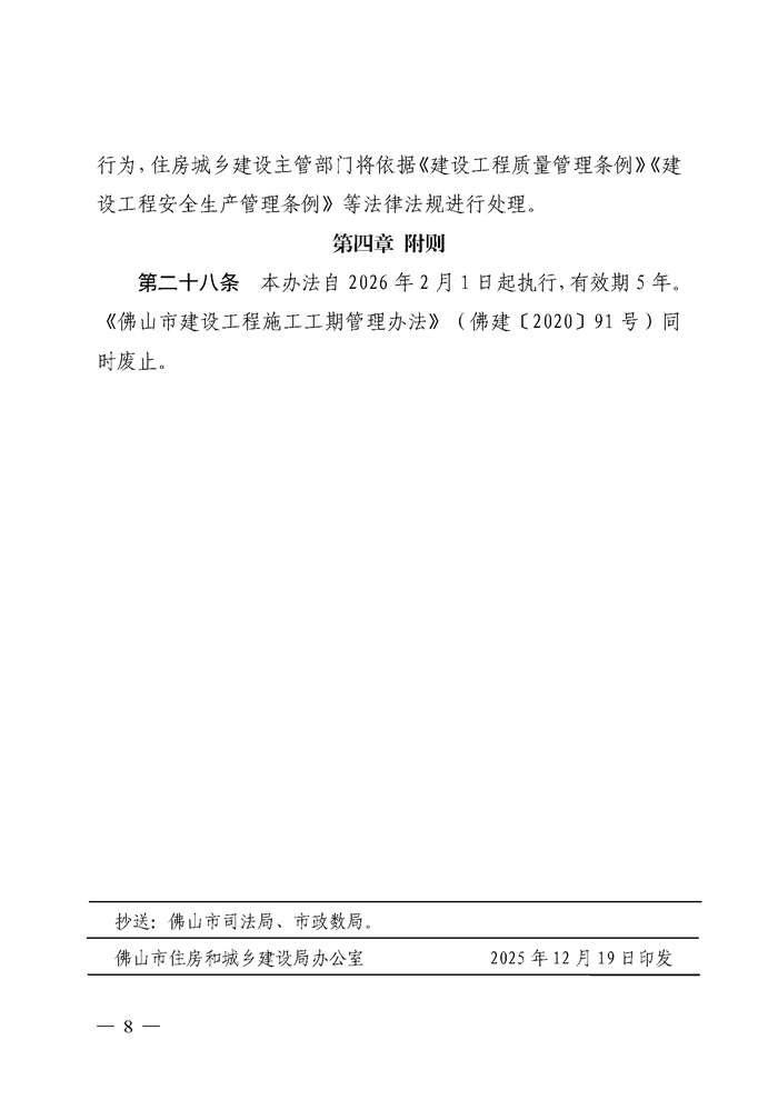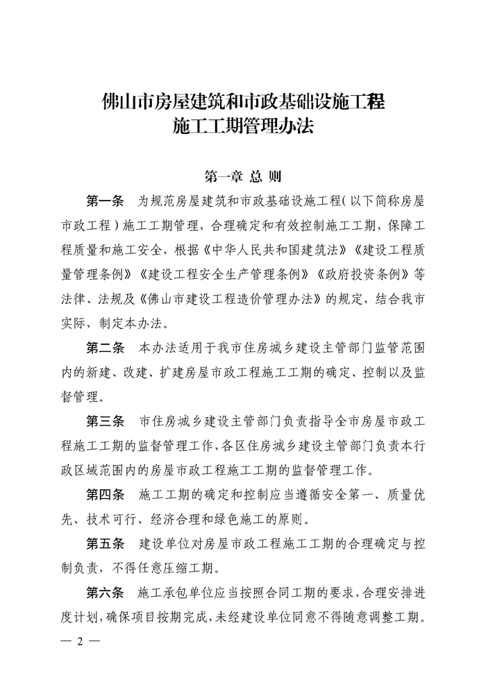 轉發 | 佛山市住房和城鄉建設局關于印發《佛山市房屋建筑和市政基礎設施工程施工工期管理辦法》的通知