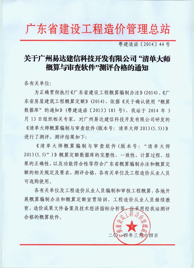 關于廣州易達建信科技開發有限公司“清單大師概算與審查軟件