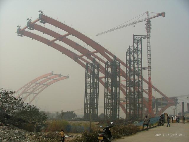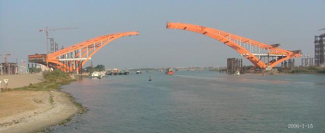 佛山日報記者陶敦普、吳禮暉、葉美英、王洪軍2006114日報道:東平大橋兩岸拱肋雖然計劃今日起才正式啟動平轉,然而,在昨日的試轉中,南岸拱肋順利轉動90度。大橋項目部有關負責人陳龍玉表示,南岸拱肋試轉非常成功,建設者信心倍增。今日,南岸拱肋將再次平轉至166度,將接近到位對接位置。