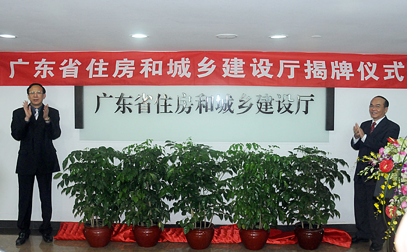 林木聲副省長和房慶方廳長為廣東省住房和城鄉建設廳揭牌