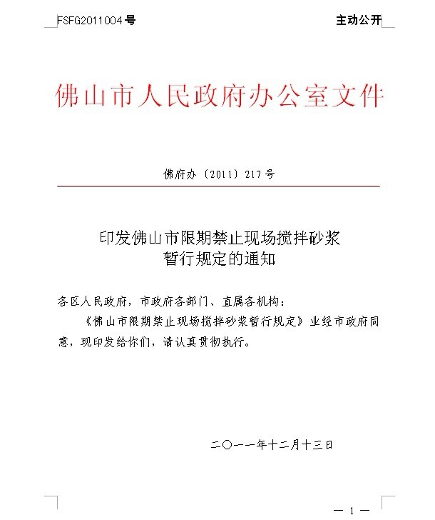 附件一:印發佛山市限期禁止現場攪拌砂漿暫行規定的通知.doc