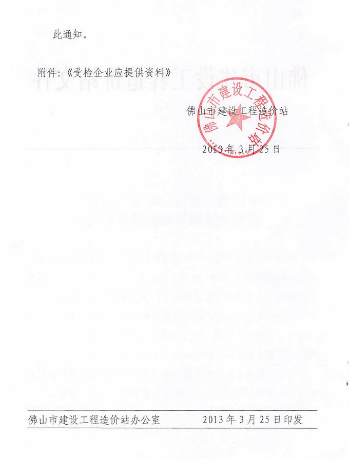 佛山市建設工程造價站關于對我市造價咨詢企業誠信動態檢查的通知