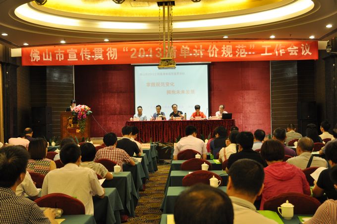 2013年8月16日上午,佛山市宣傳貫徹“2013清單計(jì)價(jià)規(guī)范”工作會(huì)議在佳寧娜酒店召開,市住建管理局副局長(zhǎng)林振漢出席會(huì)議并作了重要講話,省建設(shè)工程造價(jià)管理總站楊永副站長(zhǎng)和賴銘華科長(zhǎng)到會(huì)作了指示和精彩宣講,在主席臺(tái)就坐的還有市住建管理局建筑市場(chǎng)監(jiān)管科古瑞芳科長(zhǎng)和市造價(jià)站站長(zhǎng)余建平,會(huì)議由市造價(jià)站黃曉敏副站長(zhǎng)主持。全市各區(qū)建設(shè)主管部門分管領(lǐng)導(dǎo)和主辦科室負(fù)責(zé)人,市發(fā)改局、市審計(jì)局、市財(cái)政局、市代建項(xiàng)目管理中心、各區(qū)國(guó)土城建和水務(wù)局、佛山新城城建局、市水業(yè)集團(tuán)公司、燃?xì)饧瘓F(tuán)公司、鐵投公司、工程造價(jià)咨詢企業(yè)、招標(biāo)代理機(jī)構(gòu)等代表約200人參加了會(huì)議。