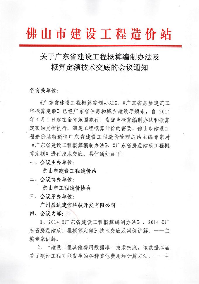 關于廣東省建設工程概算編制辦法及概算定額技術交底會議通知