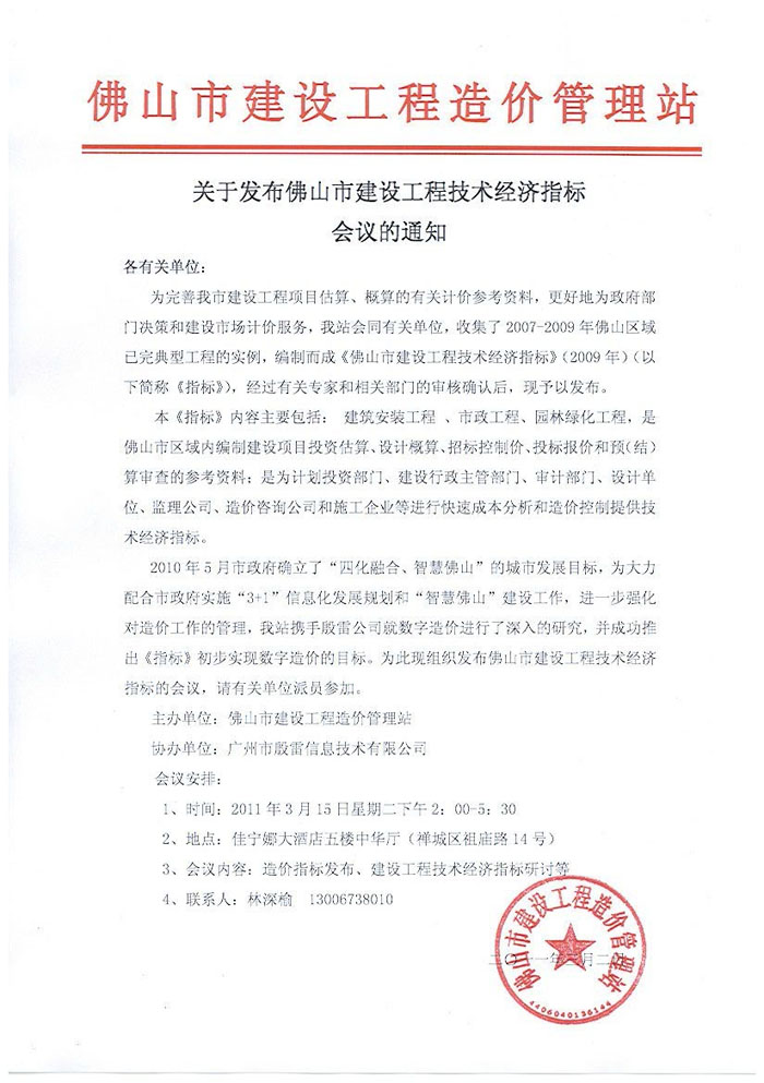 關于發布佛山市建設工程技術經濟指標會議的通知
