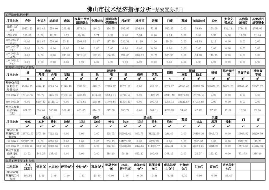 佛山市2017年第3季度技術經濟指標分析—某安置房項目