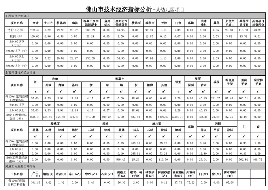 佛山市2017年第3季度技術(shù)經(jīng)濟(jì)指標(biāo)分析—某幼兒園項(xiàng)目