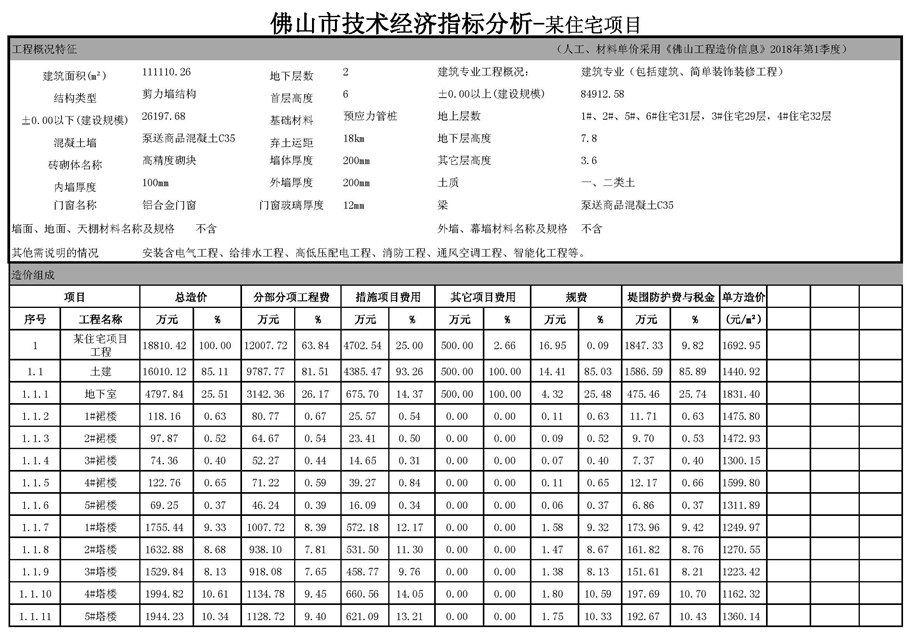 佛山市2018年第2季度技術經濟指標分析—某住宅項目