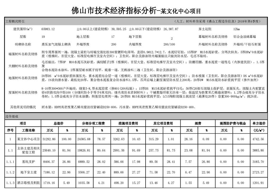 佛山市2019年第1季度技術經濟指標分析—某文化中心項目