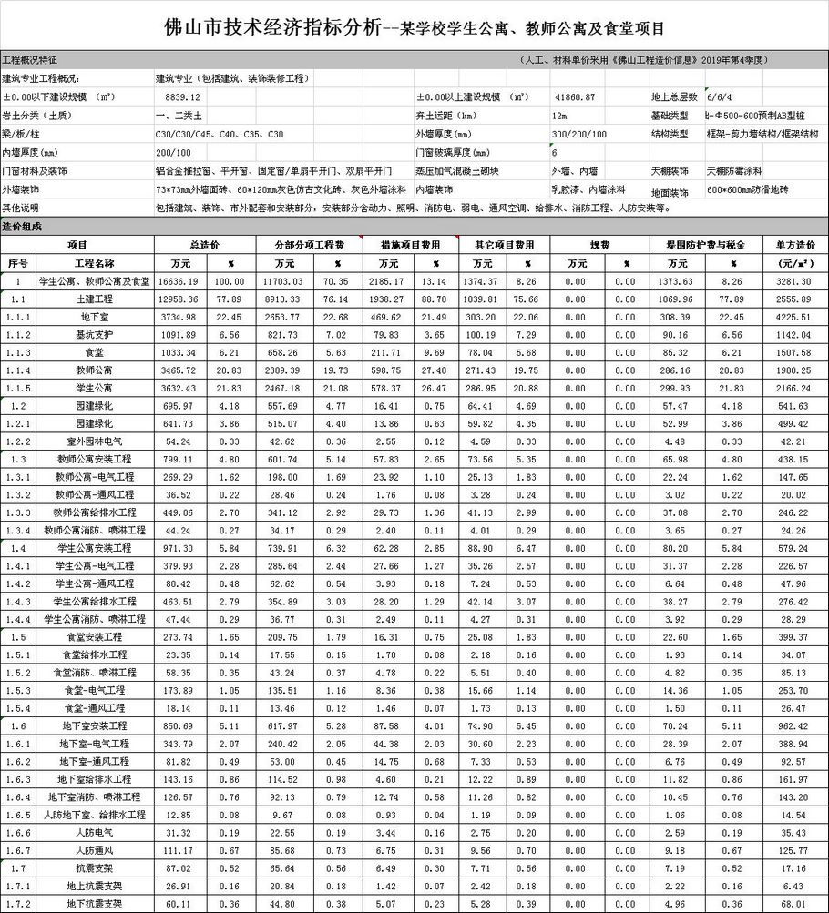 佛山市2020年第1季度技術經濟指標分析—某學校學生公寓、教師公寓及食堂項目
